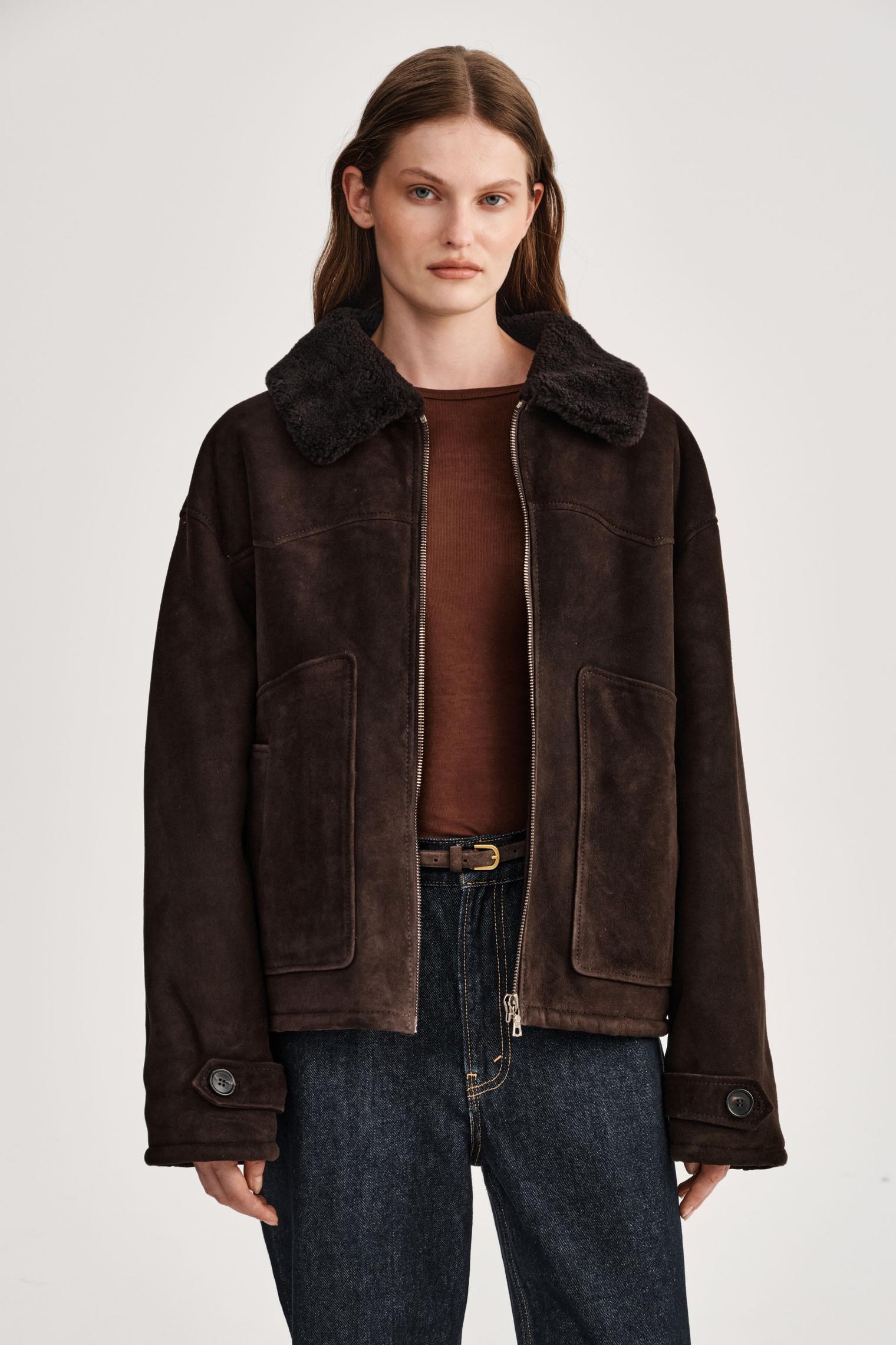 Бомбер из овчины шоколадный